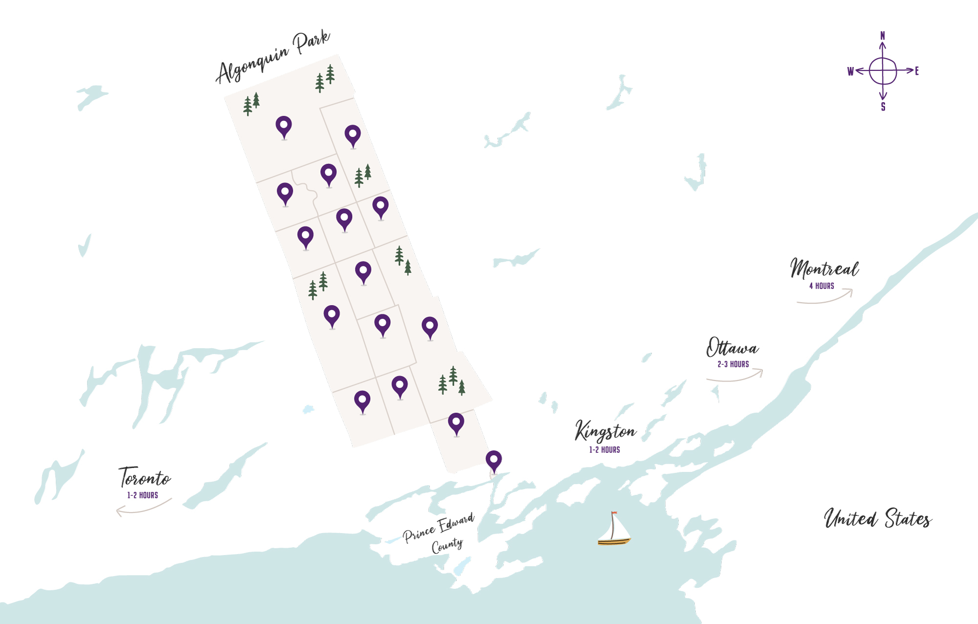 We are located exactly halfway between Toronto and Ottawa